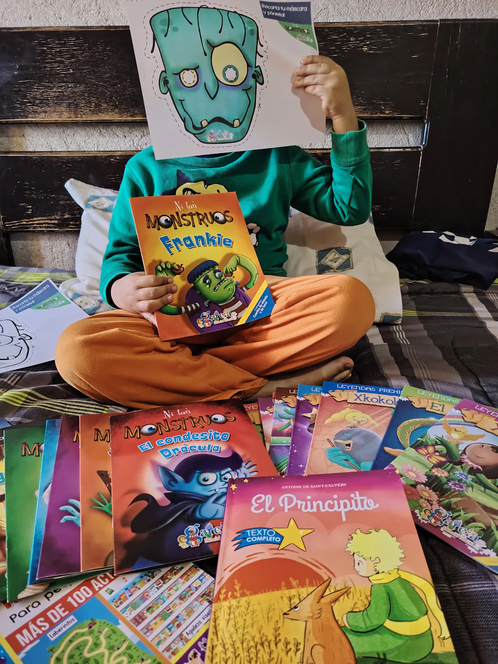 Colección de 8 títulos. Recopilación de divertidas historias de monstruos para los más pequeños, incluidas lecciones y valores que pueden presentarse en un día normal. Letra mediana y dibujos a todo color. Al final contiene un código QR para descargar divertidas máscaras de los personajes de cada cuento.